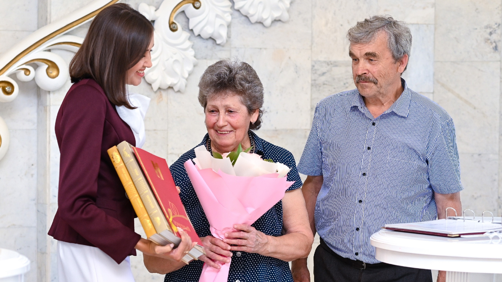Алтын туй хөрмәтенә Василий Афанасьевич һәм Валентина Николаевна исемнәре ГХАТ идарәсенең Мактау китабына кертелә. Юбилярларга Мактаулы акт һәм истәлекле китаплар тапшырдылар.
