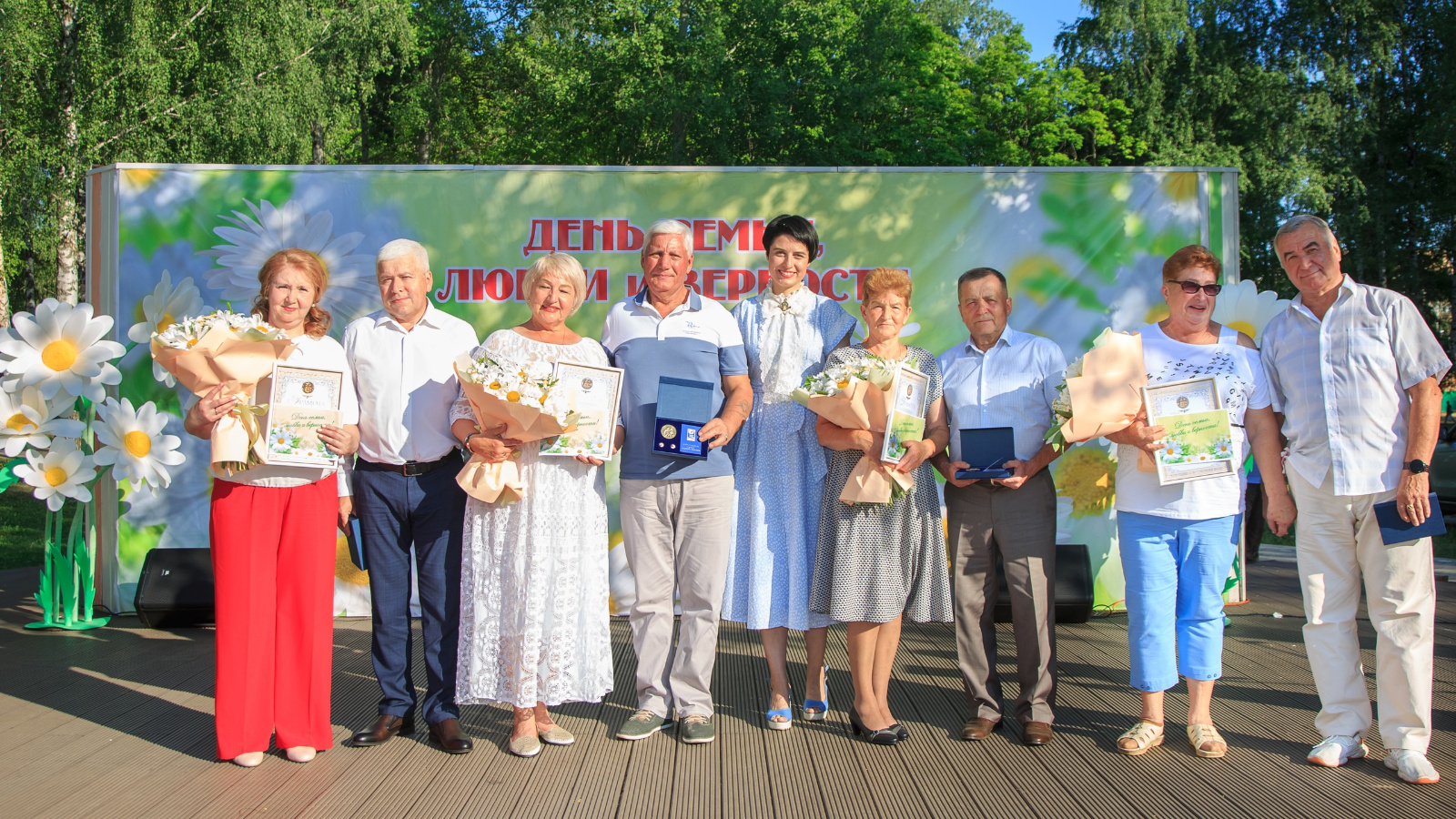 Ахатовлар, Вилковлар, Пустовые һәм Садиковлар куп еллар буе мәхәббәт һәм татулыкта яшәгәннәр һәм мөнәсәбәтләрдә тормыш зирәклеге һәм бердәмлек үрнәге булып торалар. Медальләрне Түбән Кама шәһәре мэры урынбасары Марина Камелина тапшырды.