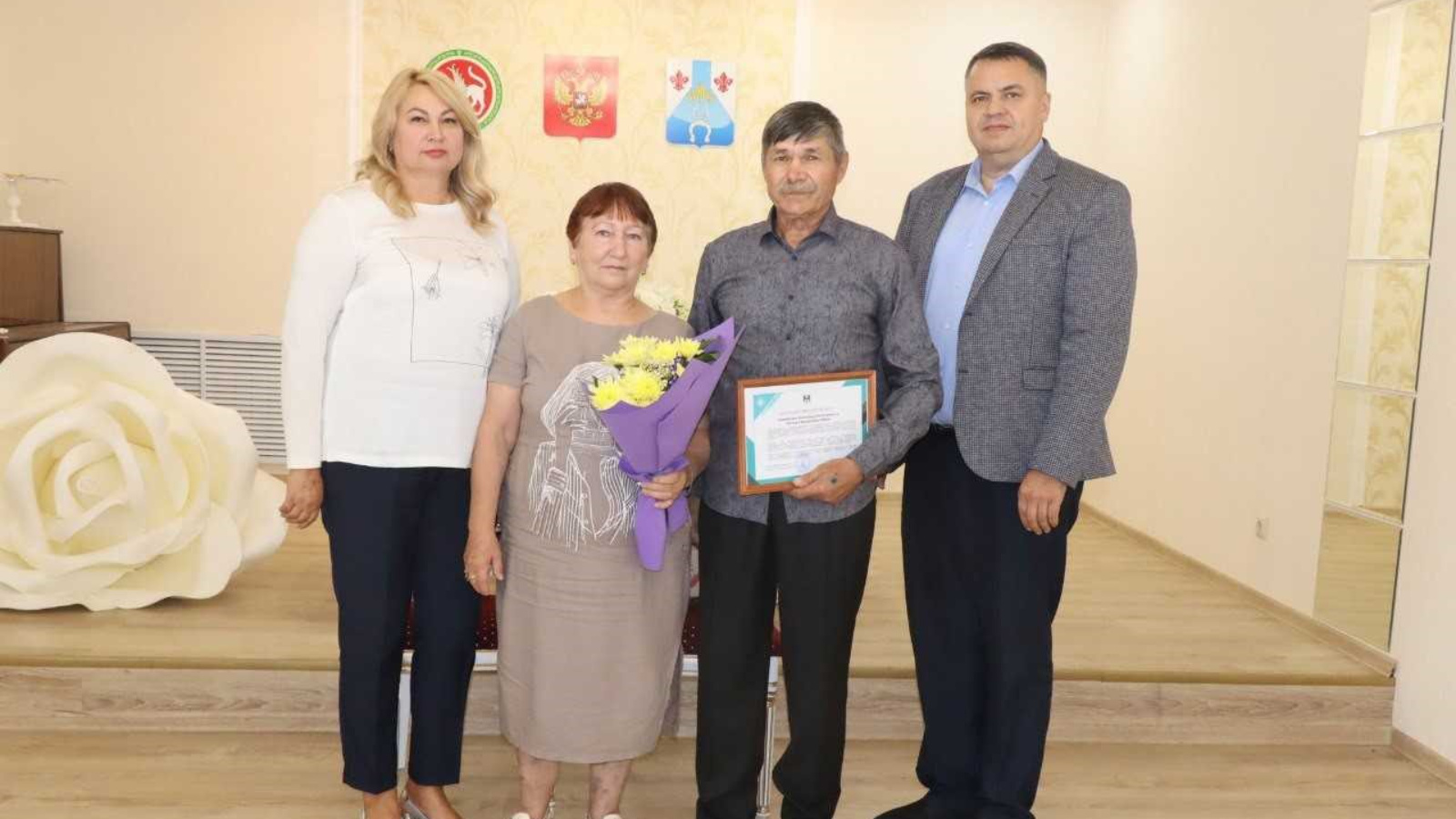 Гаилә бәйрәмендә ирле-хатынлы Чабаннарны Менделеевск районы ЗАГСында хөрмәтләделәр. Аларны Башкарма комитет җитәкчесенең социаль мәсьәләләр буенча урынбасары Дамир Ханзаров котлады һәм аларга район башлыгыннан истәлекле бүләк һәм Рәхмәт хаты тапшырды. Шулай ук котлауларга ЗАГС бүлеге башлыгы Татьяна Алексеева һәм "Химик" ТОС рәисе Әлфия Талыпова да кушылды. Ләкин бәйрәмнең төп кунаклары балалар һәм оныклар булды. Алар ата-аналары өчен нык шатландылар һәм чын күңелдән теләкләрен җиткерделәр.