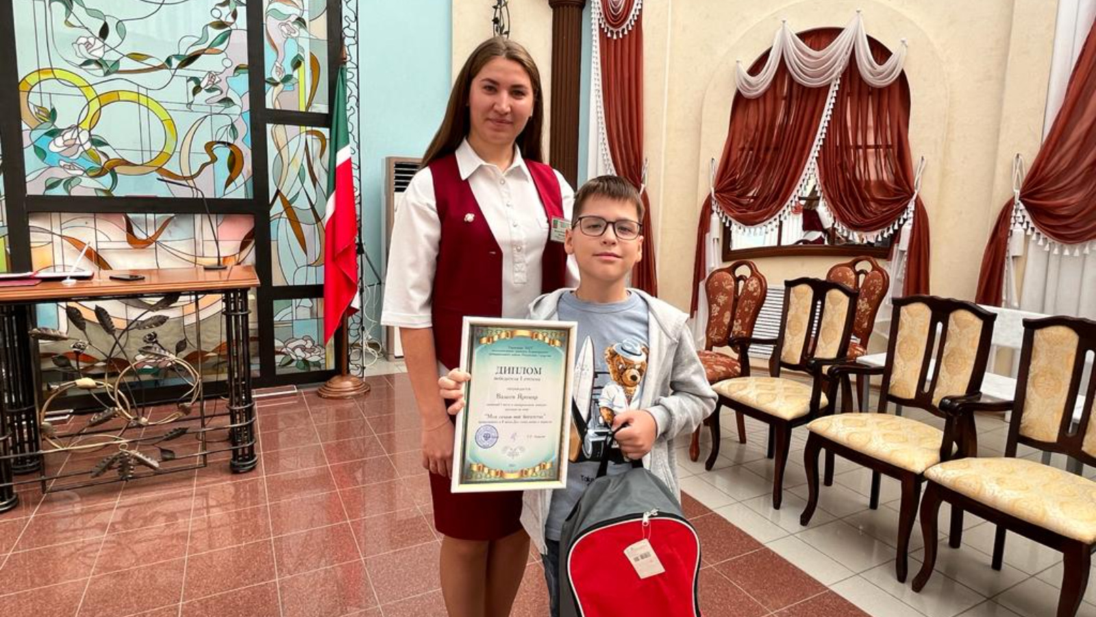 31 август аенда Әлмәт шәһәренең ГХАТ идарәсендә «Гаилә-балалар күзлегеннән» рәсем конкурсында җиңүче Вәлиев Яромирга-3 нче урта гомуми белем бирү мәктәбенең муниципаль бюджет мәгариф учреждениесе укучысына бүләк тапшыру тантанасы булды.