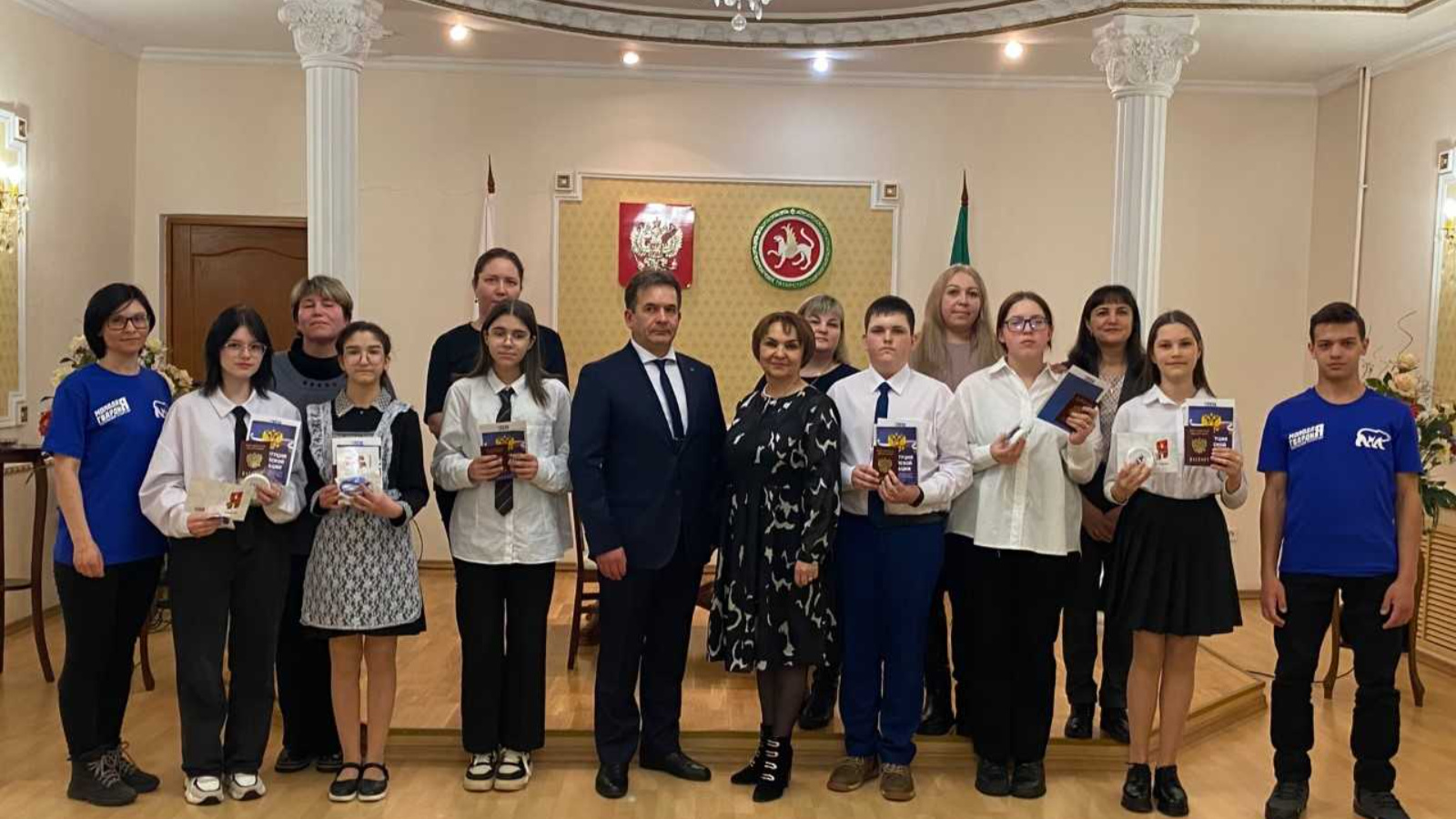 Паспортлар тапшырганда, Баулы муниципаль районы Башкарма комитеты җитәкчесенең социаль мәсьәләләр буенча урынбасары И.И. Хуснуллина балаларны котлады һәм яшьләрнең игелекле, ярдәмчел, гаиләләрен хөрмәт итүче һәм Ватанын яратучы кешеләр булачагына өмет белдерде. «Яшь гвардия " хәрәкәте вәкилләре балаларга символик бүләкләр тапшырды.