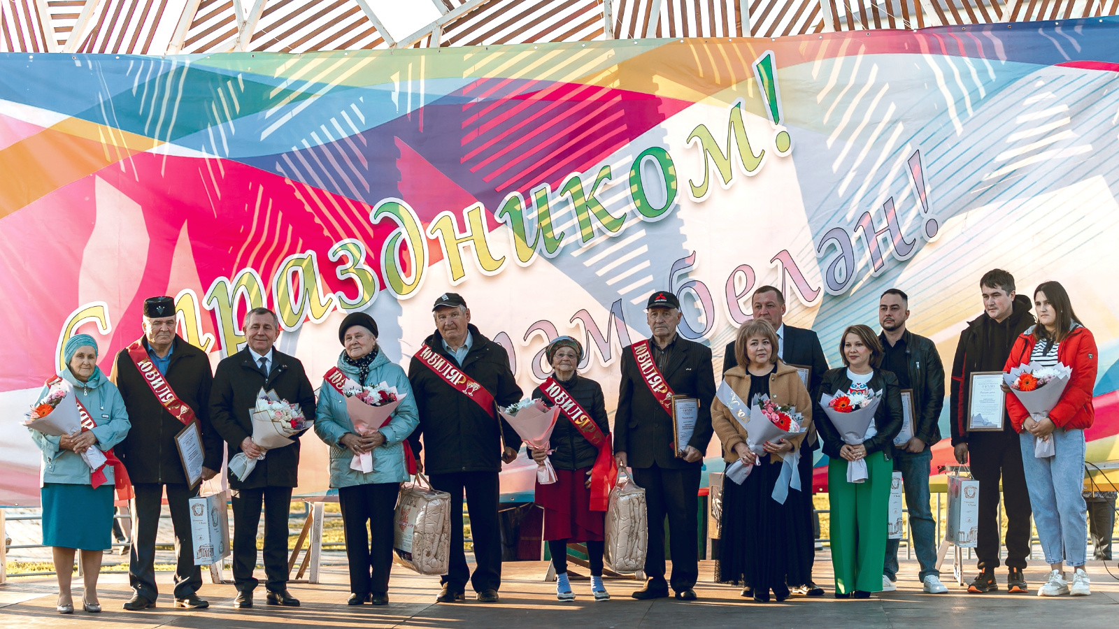 Гаилә тормышының зөбәрҗәт юбилярлары сәхнәгә беренче булып күтәрелде. Түбән Шәндер авыл җирлегеннән Геннадий-Зинаида Смирновлар, Мамадыш шәһәреннән Владимир-Нина Бастригиннар гаиләсе район башлыгы Анатолий Ивановның Рәхмәт хаты, чәчәкләр һәм истәлекле бүләкләрен алдылар. "Зөбәрҗәт парлар" статусын кызыл тасмалар белән ныгыттылар. "Актив яшәү рәвеше алып барабыз, барлык бәйрәмнәрне билгеләп үтәбез, оныкларыбызны яратып үстерәбез, гомумән, картлыгыбыз бик бәхетле", - дип уртаклаша юбилярлар.