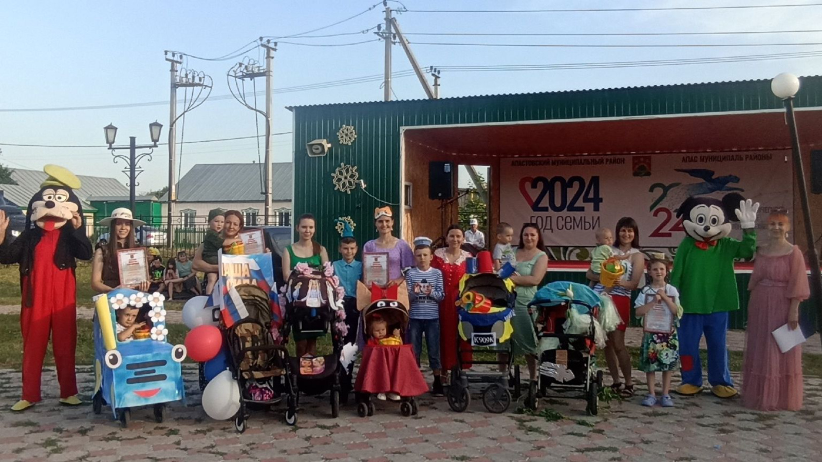 Апас үзәк ял паркында шат авазлар, моңлы җырлар яңгырап торды. Бәйрәм кунакларын район башкарма комитеты җитәкчесе Гөлүсә Галләмова сәламләп, район башлыгы Айрат Җиһаншинның котлау сүзләрен җиткерде. Районның актив гаиләләре сәхнә түренә чакырылып хөрмәтләнде. Чит балаларга күңел җылысын өләшкән изге күңелле, олы йөрәкле гаиләләргә рәхмәт сүзләре ирештерелде. Апастан 8 баланы гаилә кочагына сыендырган Җәмил һәм Лилия Насыйровлар һәм 7 балага ана назы өләшкән Биеш авылыннан Любовь Зотеева Татарстан Республикасы Дәүләт Советы Рәисенең Рәхмәт хатлары белән бүләкләнделәр. Шулай ук Апаста яшәүче яшь гаилә Фәнис һәм Лилия Корбангаливларның игезәк балалары туу сөенечен уртаклаштылар. Аларга район башлыгының тәбрикләүләре ирештерелеп, истәлекле бүләкләре тапшырылды. Быел Алтын туйларын билгеләп үткән Апастан Габбас абый белән Таһирә апа Шәфигуллиннарга һәркем соклануын белдерде. Алар сәхнә түренә чакырылып хөрмәтләнделәр. “Балалар коляскалары” парады нәни сабыйлары булган яшь гаиләләрне бер мәйданга җыйды. Берсеннән-берсе матур итеп бизәлгән коляскаларга балаларын утырткан бәхетле әти-әниләр бәйрәмнең төп кунаклары булдылар. Коляскалары да гади түгел. Бәйгедә катнашкан 6 коляска арасында ниндие генә юк иде. Ә төп пассажирлары һәм йөртүчеләре балалар булды. Гаиләләр тезелеп мәйдан әйләнде. Үзләренең коляскалары һәм гаиләләре хакында сөйләде. Жюри барысын да исәпкә алып, үз фикерен белдерде. Һәр номинациядә җиңүчеләргә Дипломнар, бүләкләр тапшырылды. Беренче тапкыр нәниләр арасында узган «Абаланучы балалар йөгереше» бәйгесе аеруча мавыктыргыч булды. Тәпи китмәгән сабыйлар тәүге тапкыр җитезлекләрен сынады. Ә әти-әниләр, тамашачылар аларга көч-куәт биреп тордылар. Җиңүчеләр дә билгеләнде. Бәйрәмгә апаслылар гаиләләре белән бергәләп килделәр. Алар өчен районыбызның үзешчән сәнгать осталары моңлы җырларын бүләк иттеләр. Гаиләләр өчен төрле бәйгеләр, конкурслар оештырылды. Соңыннан күмәк биюләр биеп, лотерея да уйнатылды.