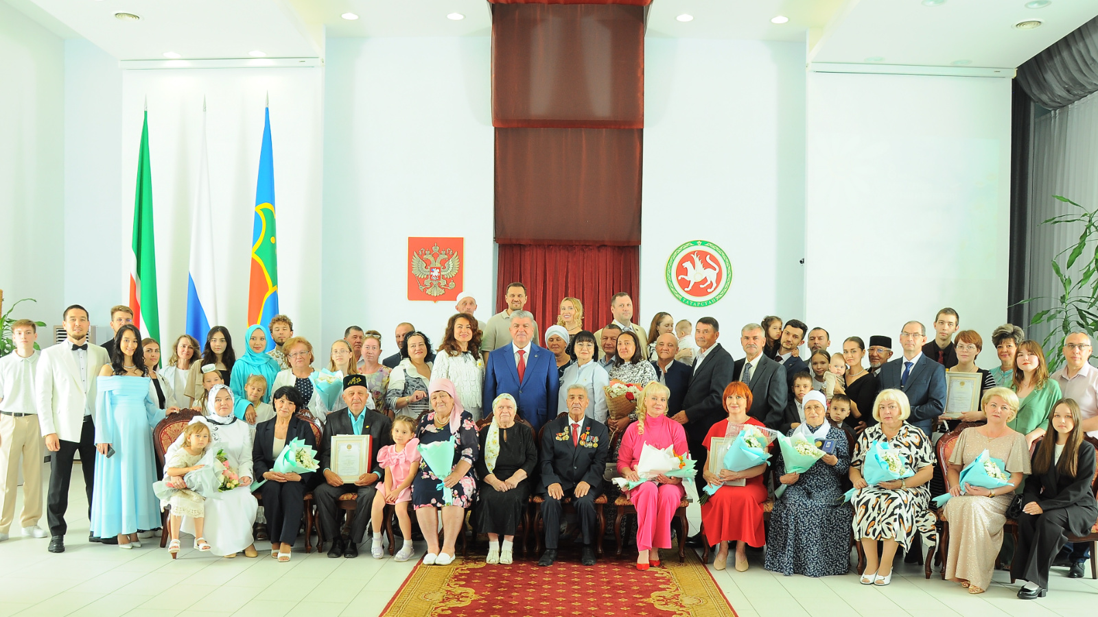 Бүген Тантаналар сараенда шәһәр мэры Наил Гамбар улы Мәһдиев Чаллы шәһәренең атаклы гаиләләренә «Мәхәббәт һәм тугрылык өчен» истәлекле медальләр тапшырды: