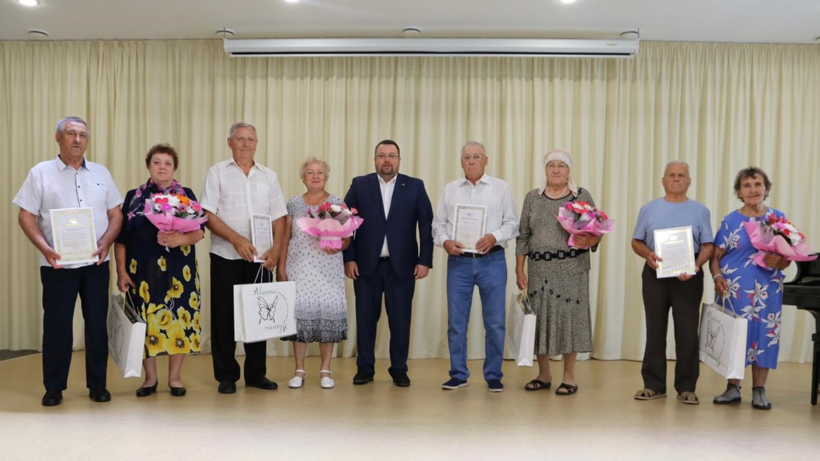 ЗАГС бүлегендә бергә яшәүләренең 60 еллыгын билгеләп үткән Кирилловлар Николай Анатольевич һәм Людмила Васильевналарны, бергә яшәүләренең 55 еллыгын билгеләп үткән Салахиевлар Әсхәт Афтахович һәм Миңнәфис Хәмитовналарны, 50 ел мәхәббәт һәм татулыкта яшәгән ике пар, Фроловлар Николай Александрович һәм Любовь Николаевна, шулай ук Чупариновлар Евгений Николаевич һәм Мария Николаевна гаиләләрен хөрмәтләделәр.