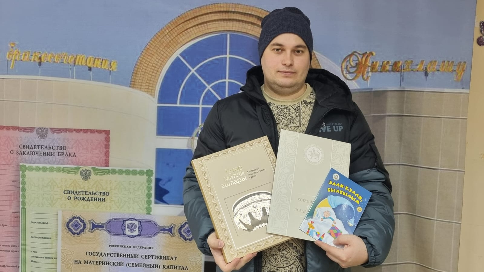 ГХАТ Идарәсе белгечләре бәхетле ата-ананы котлап, баланың әтисенә беренче дәүләт документын - туу турында таныклык.