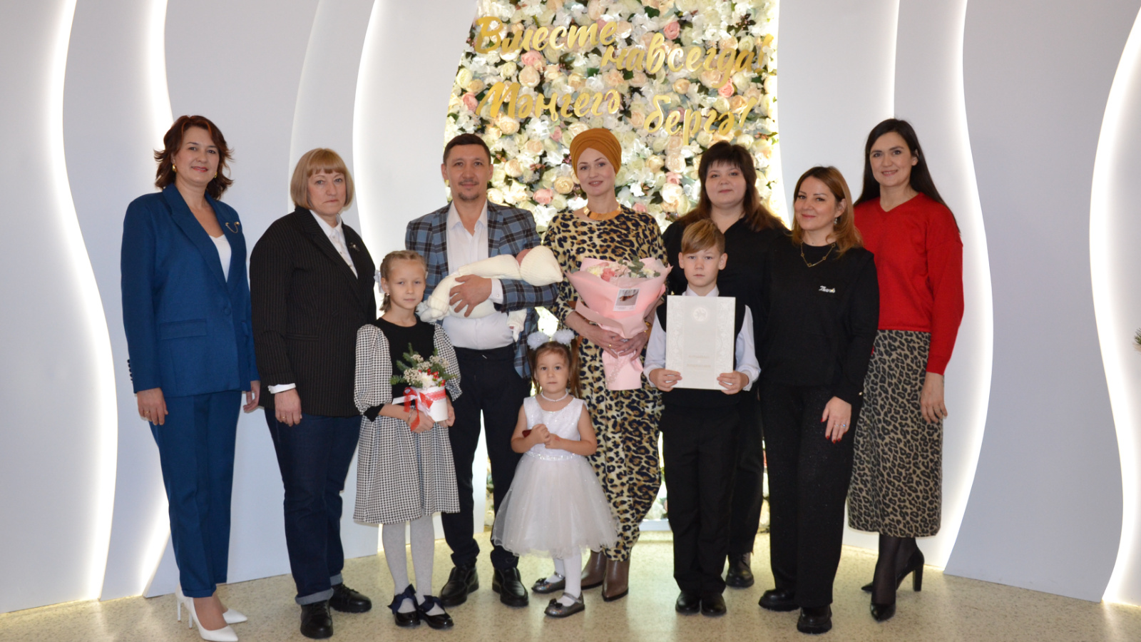 ЗАГС бүлеге җитәкчесе Илмира Ярмушева исем кушу тантанасы үткәрде һәм тантаналы рәвештә баланың беренче документын – туу турында таныклык тапшырды.