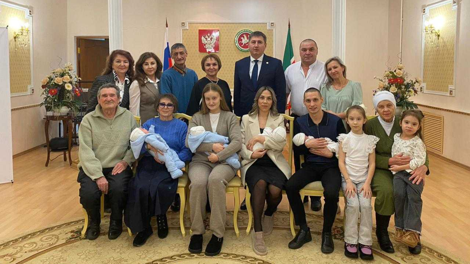 Бәхетле әти-әниләрне икеләтә бәхетләре белән Баулы муниципаль районы башлыгы И.И. Гозәиров котлады һәм аларга гаилә иминлеге һәм игезәкләрнең әти-әниләре ролендә уңышлар теләде.